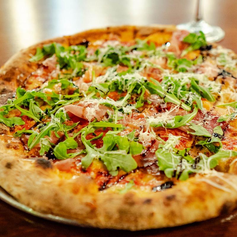 Prosciutto, arugula, fig glaze, tomato sauce, mozzarella.